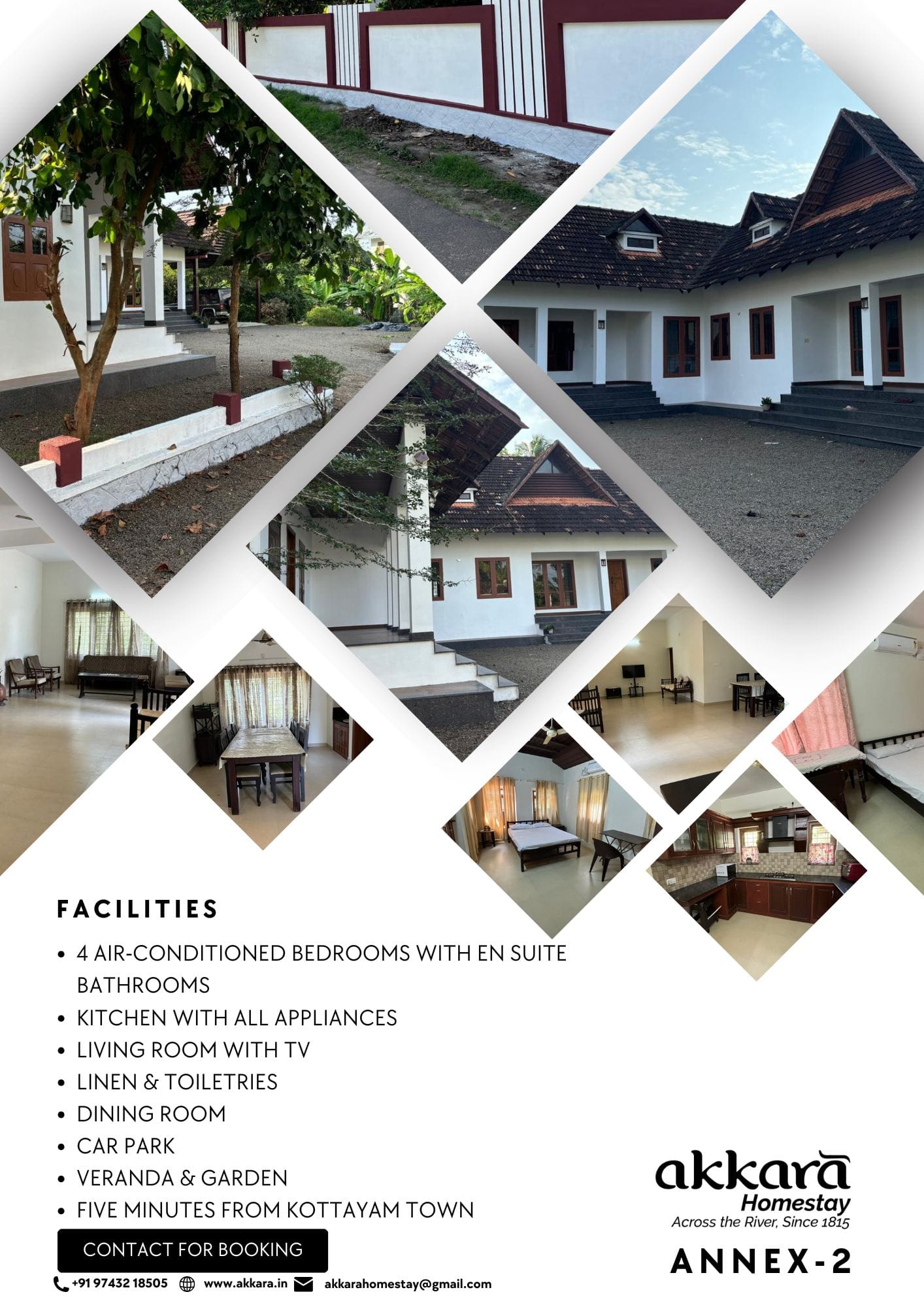 These safe, clean, and independent villas are conveniently located near Kottayam town, making them perfect for small family retreats, friendly gatherings, or hosting guests attending events or functions at Akkara Homestay.